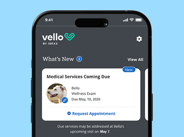 Staying connected with pet owners shouldn’t be complicated. Built for IDEXX practice management platforms, the Vello Client Engagement Platform brings all your client communication tools together in one place. With two-way SMS, a pet owner app, and automated reminders, it helps build stronger relationships and improve efficiency while increasing wellness visits by 5.5% on average.1