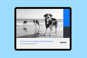 The IDEXX SDMA Test is a sensitive kidney function test that helps to identify kidney disease in dogs and cats. If acute kidney injury is identified, then the underlying cause should be treated appropriately. If CKD has been diagnosed and SDMA and creatinine remain increased but stable, the animal should be staged using the IRIS CKD guidelines. We recommend veterinarians utilize the current IRIS treatment guidelines to help determine appropriate treatment.11